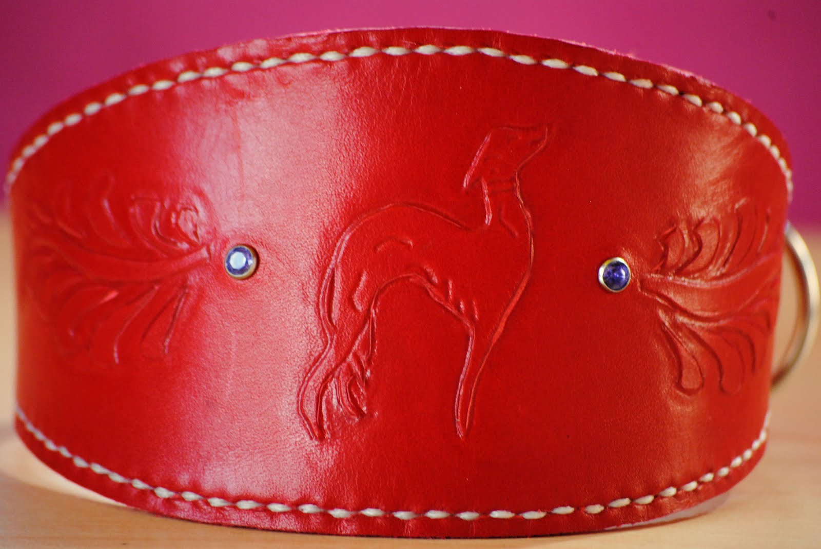 Los galgos necesitan articulos diferentes a los demas perros, por sus especiales caracteristicas de su cuello y del uso que se hace de el. Este material resulta casi siempre la mejor elección para el perro. Flexibles, duraderos, resistentes y comodos. Cuero curtación vegetal, sin quimicos que pueden afectar la piel o el pelo del perro. Disponibles en muchos colores. Tambien se hacen para todo tipo de perros.